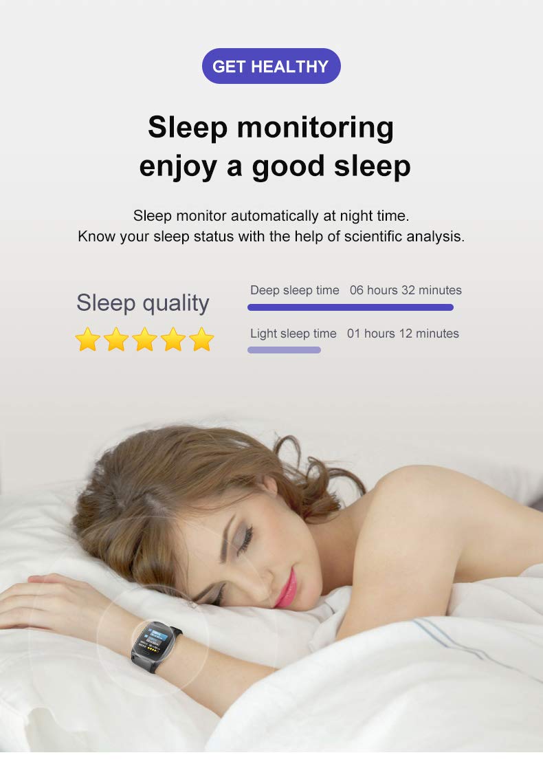 - 【Theo dõi nhịp tim & huyết áp & giấc ngủ】 Theo dõi nhịp tim và huyết áp theo thời gian thực một cách tự động & liên tục, bạn cũng có thể nhận được báo cáo đầy đủ trong Ứng dụng. Tự động theo dõi chất lượng giấc ngủ của bạn, giúp bạn phân tích dữ liệu chất lượng giấc ngủ và cải thiện thói quen và phong tục của bạn.